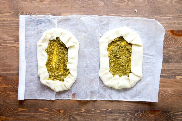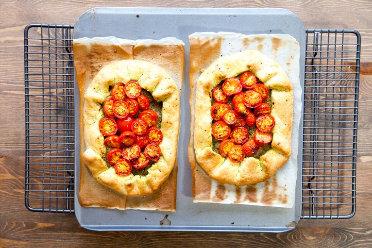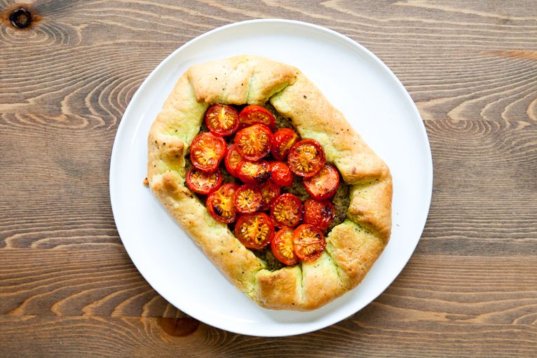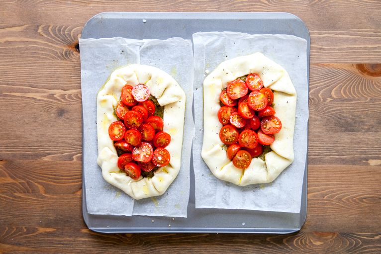These pretty galettes are so simple to make, in just a few minutes you’ll have shortcrust pastry tart filled with green pesto and cherry tomatoes, topped with a perfectly poached egg.
