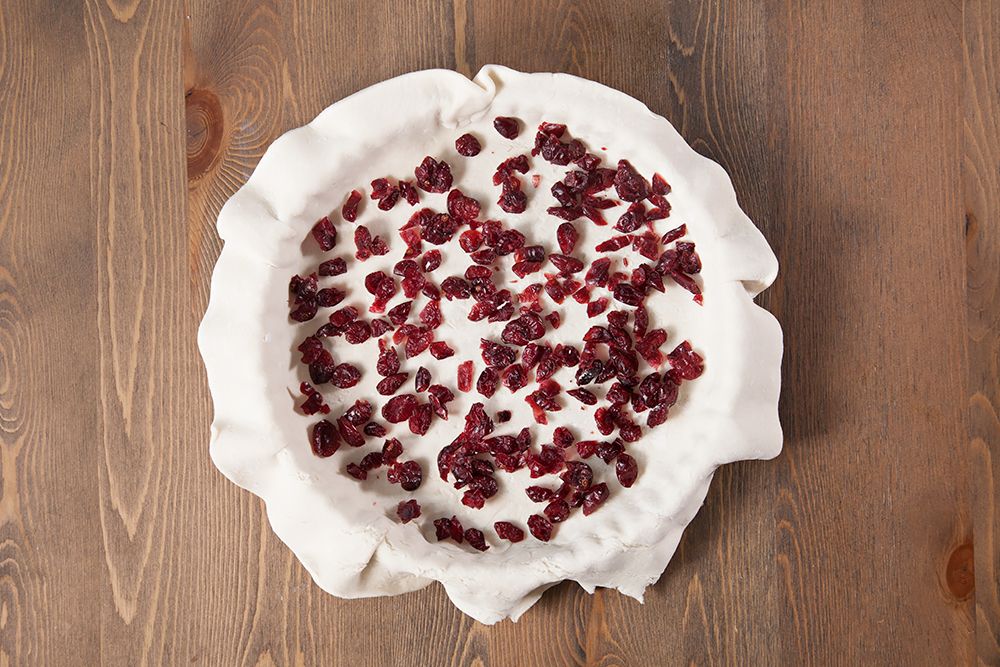 - Sprinkle the cranberries evenly into the base of the pastry case.