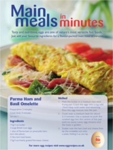 | Main Meals in Minutes (2pp flyer, A5) features great main meal recipes with eggs |