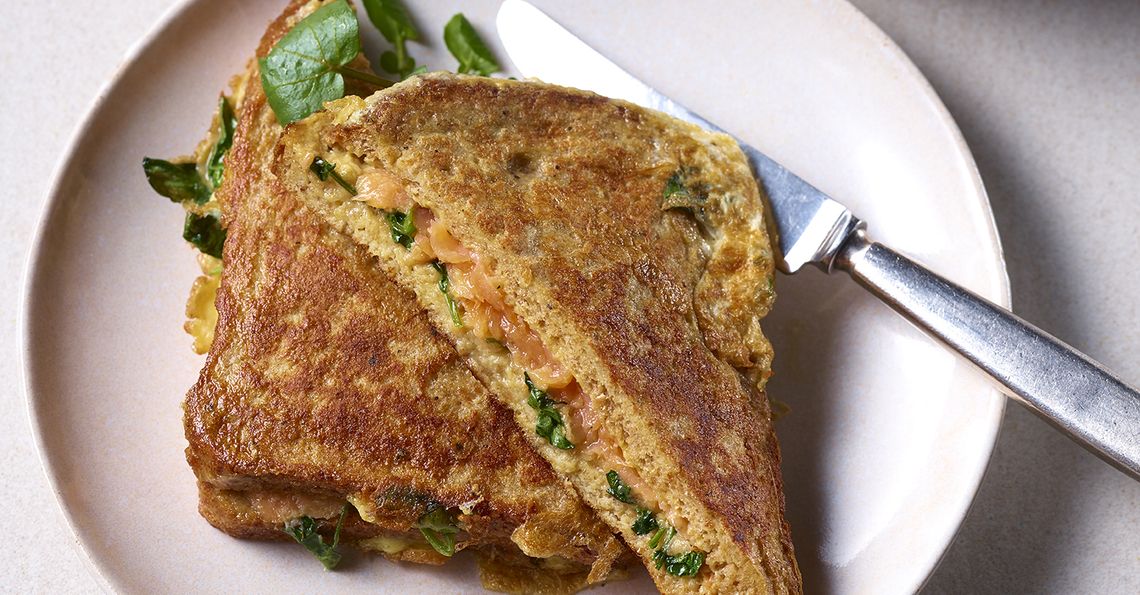 Smoked salmon and watercress eggy bread sandwich