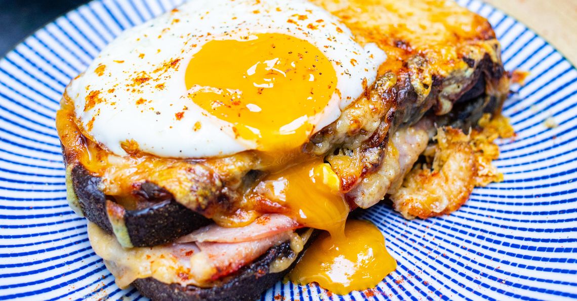 9. Get your sandwiches out of the oven and add an egg on top of each one. Then tuck into this delicious dish!