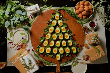 Ham and vegetable egg pizza Serves: 12 Prep: 15 mins Cook: 20 mins A family feast that is a lot healthier than a takeaway.